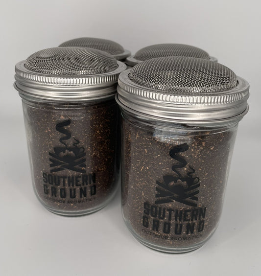 Today, our products are a proprietary blend of recycled coffee grounds and sawdust, collected from other small businesses here in North Georgia. We infuse each batch with a variety of essential oils—several of which are known to help repel mosquitoes, including citronella, cinnamon, and cedar.